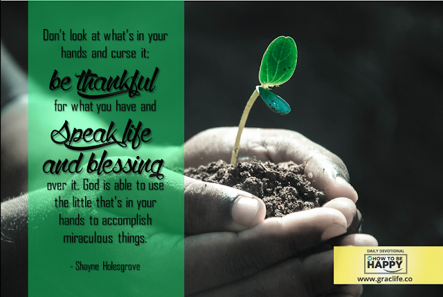 Don’t look at what’s in your hands and curse it; be thankful for what you have and speak life and blessing over it. God is able to use the little that’s in your hands to accomplish miraculous things. It might be feeding many people on a little budget or stretching a budget to complete a project at work, but this isn’t limited to finances. God is able to multiply your efforts as a small team to accomplish extraordinarily big things. He is able to use the little people resources, time and skill that you have to do more than you could imagine. You may feel like you don’t have enough energy, but He can multiply your strength. It all comes down to trusting God as your supply (in all areas) and not being limited by what you see (or feel).
